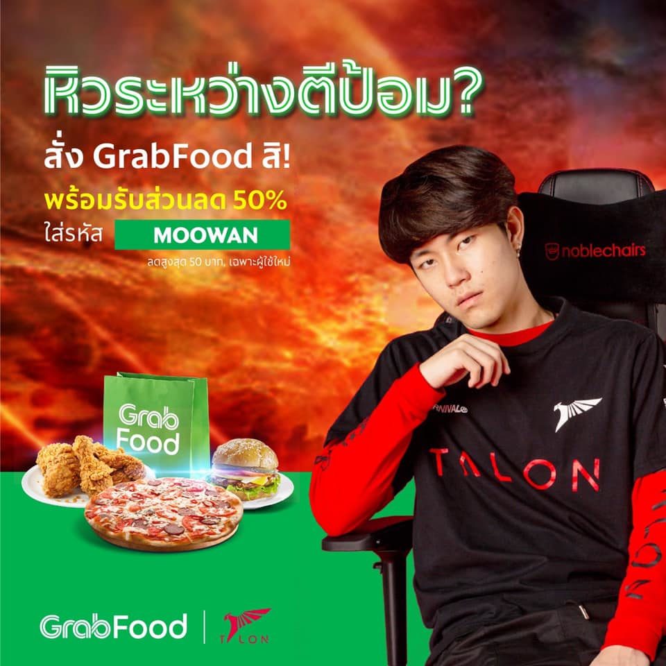 เรียกว่าได้รับความนิยมมากขึ้นเรื่อยๆสำหรับเหล่านักกีฬาอีสปอร์ต หรือ โปรเพลเยอร์ โดยล่าสุด ชื่อของ Moowan จากทีม Talon Esports กลายเป็นส่วนลดแอพเดลิเวอรีชื่อดังอย่าง Grab Food